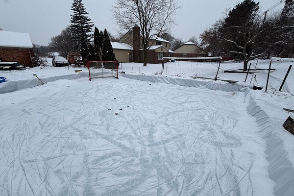 On the backyard rink, finding joy, and thankfulness for my kids.