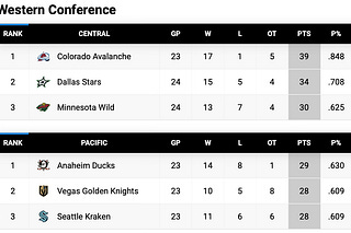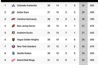 Happy Thanksgiving, let's look at the NHL standings