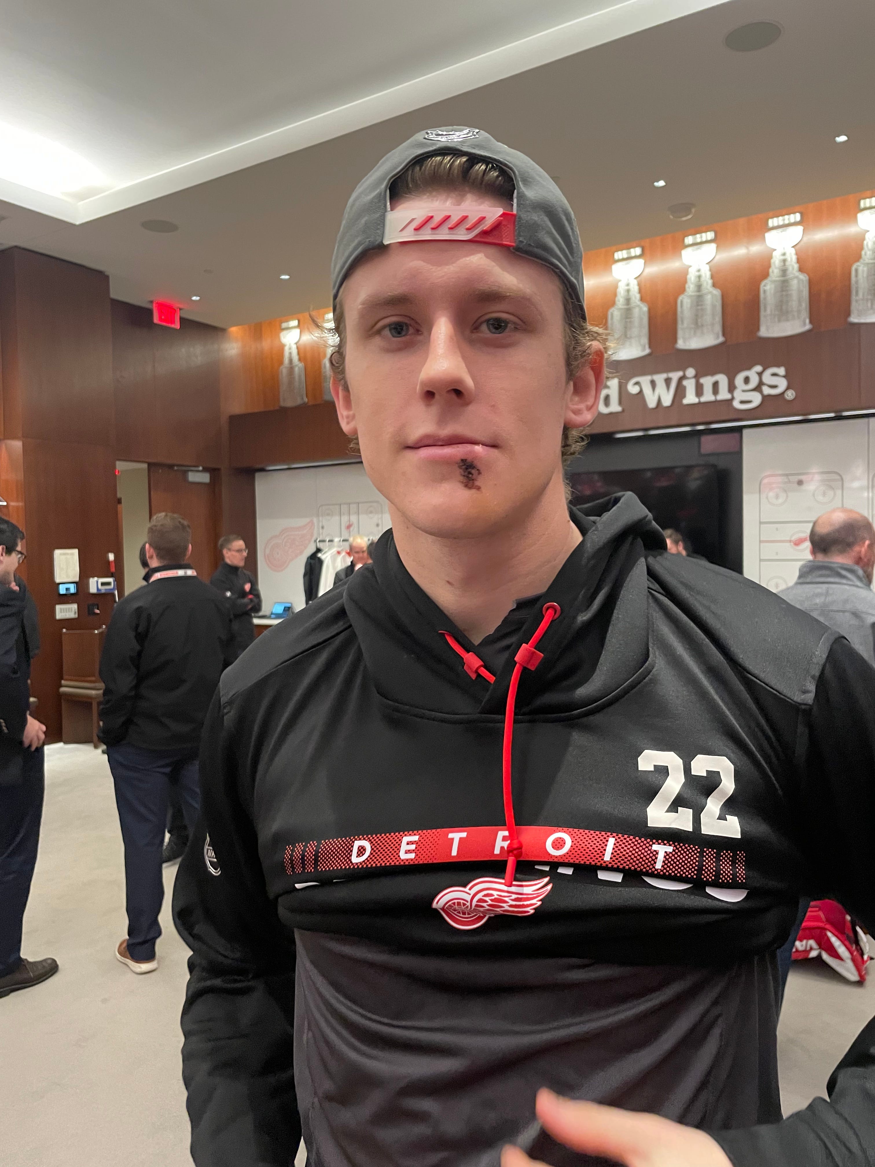 And Luff’s game has been one that’s been better than expected since he was recalled from Grand Rapids and the AHL after injuries struck for the Red Wings. He was praised by Red Wings coach Derek LaLonde on Thursday morning, and tonight he’ll still be back in the lineup, albeit with a slightly fatter lip.