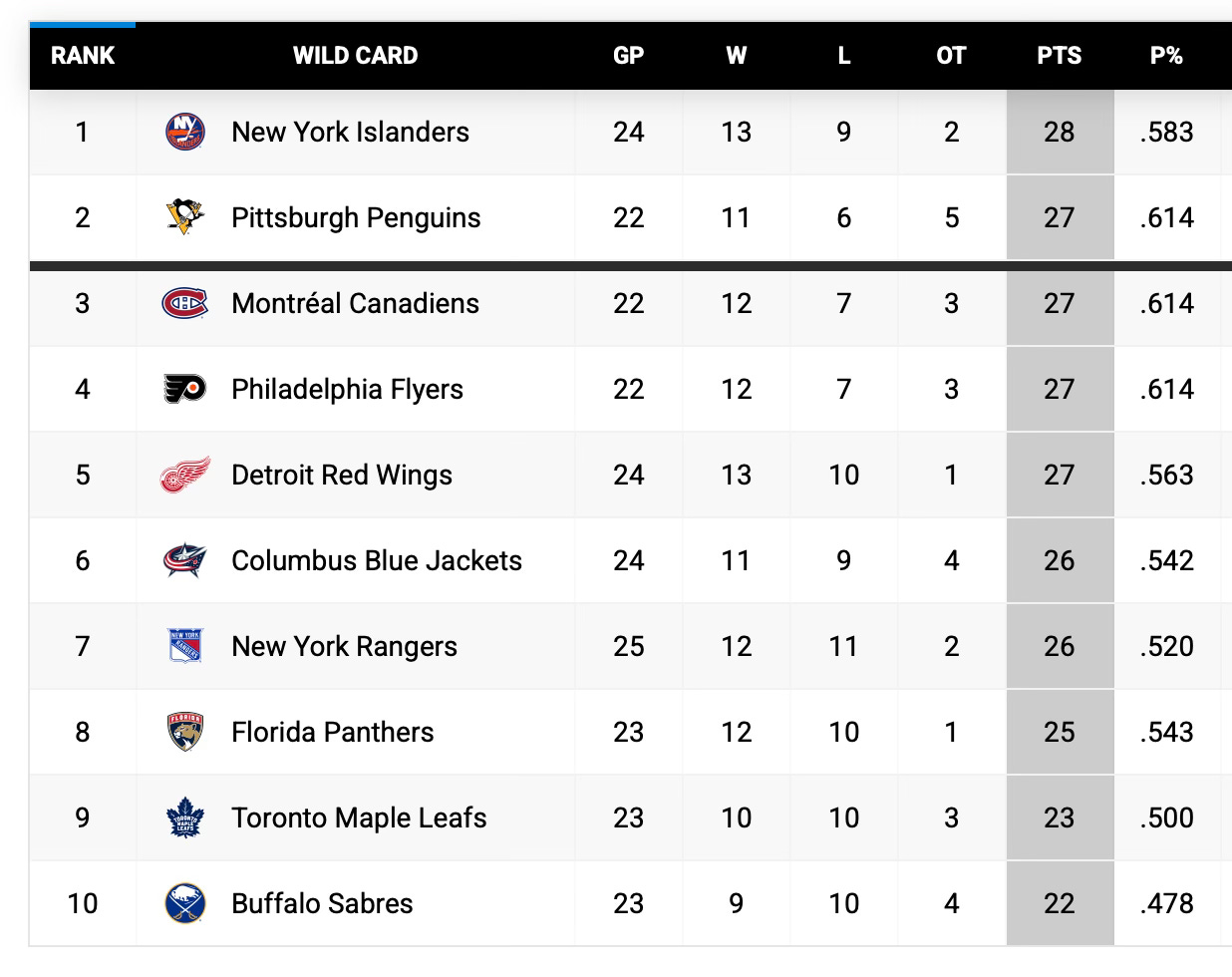 Now take a second look at those standings and examine how small the gap is between the bottom of the league and the playoff cutline. In the Eastern Conference it feels like only one team, the Buffalo Sabres, are actually out of it.