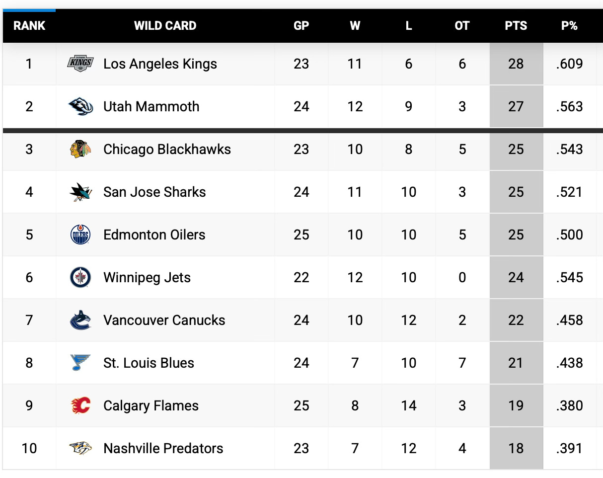 It’s not an exact science, of course, the Edmonton Oilers were below the cutline on Thanksgiving 2024 and went to the Stanley Cup Final. But it’s at least worth taking a snap shot of the standing this morning.