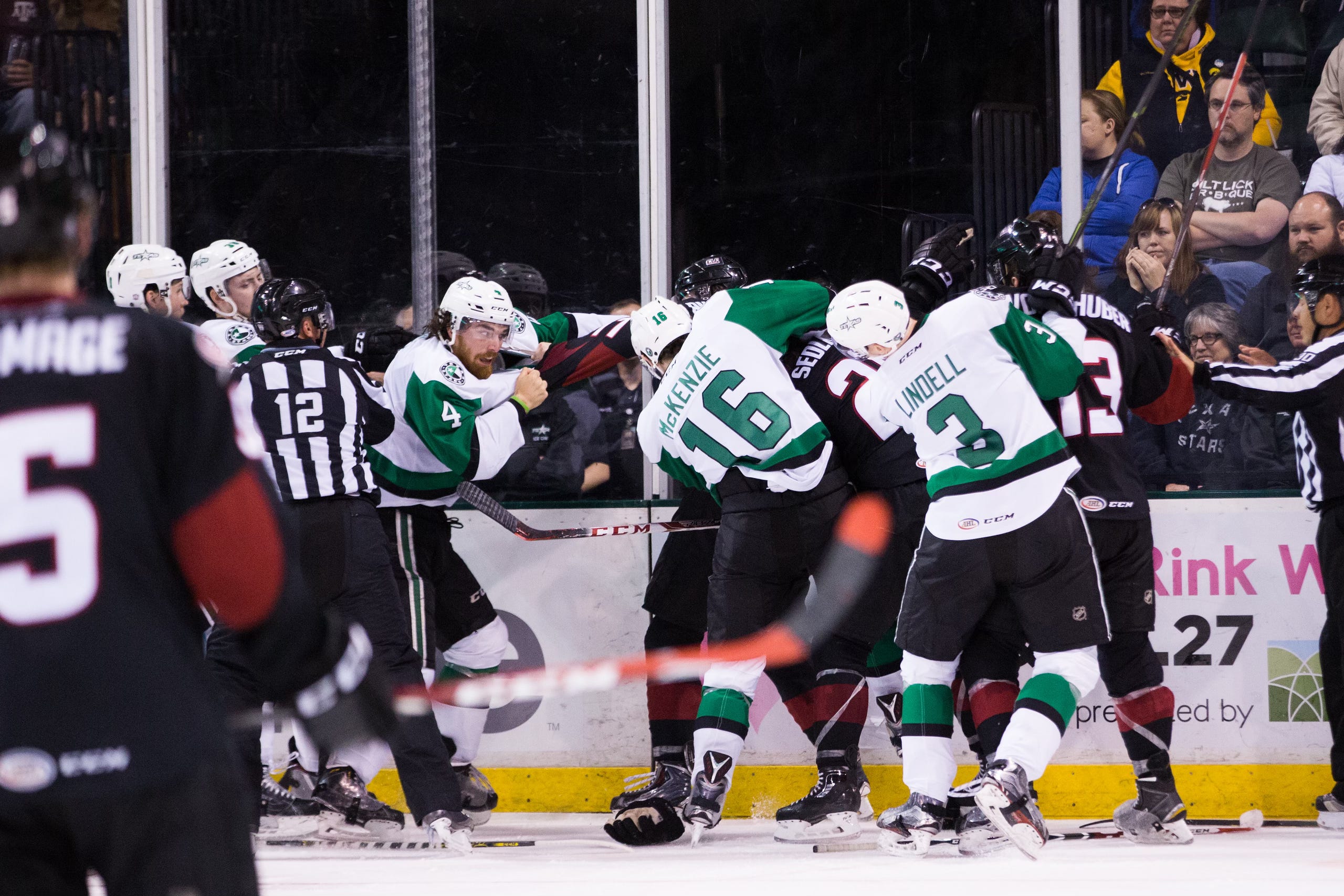 Christina is also a damn good photographer, who can capture that chaos, things erupting and colliding all at once, like this shot where a young Stephen Johns, Curtis McKenzie, and Esa Lindell scrapped against the Lake Erie Monsters.